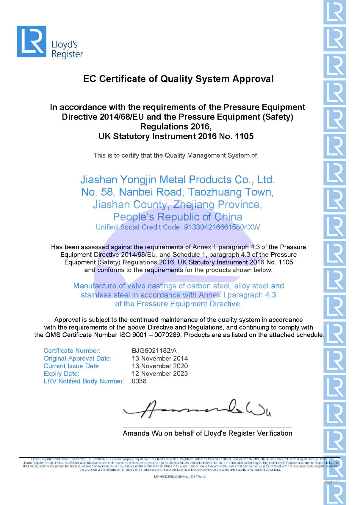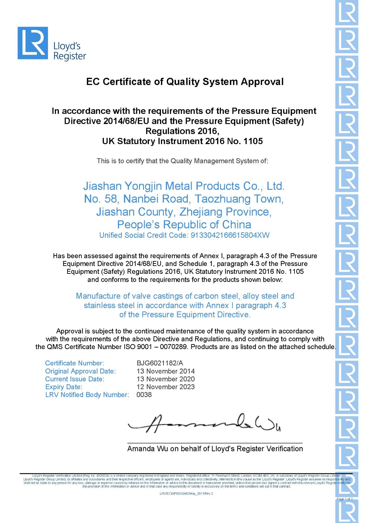 通過(guò)英國(guó)勞氏ISO9001-2015認(rèn)證
