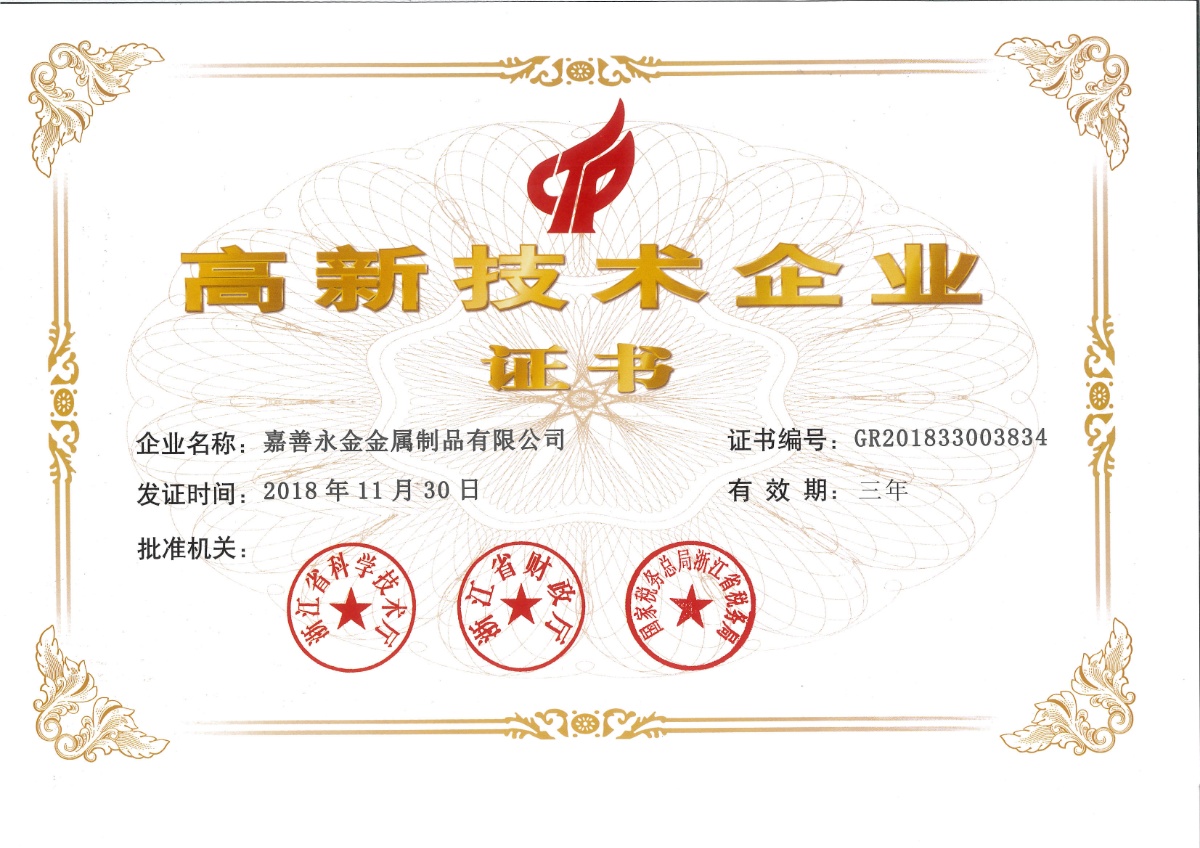 榮獲《高新技術(shù)企業(yè)》證書(shū)