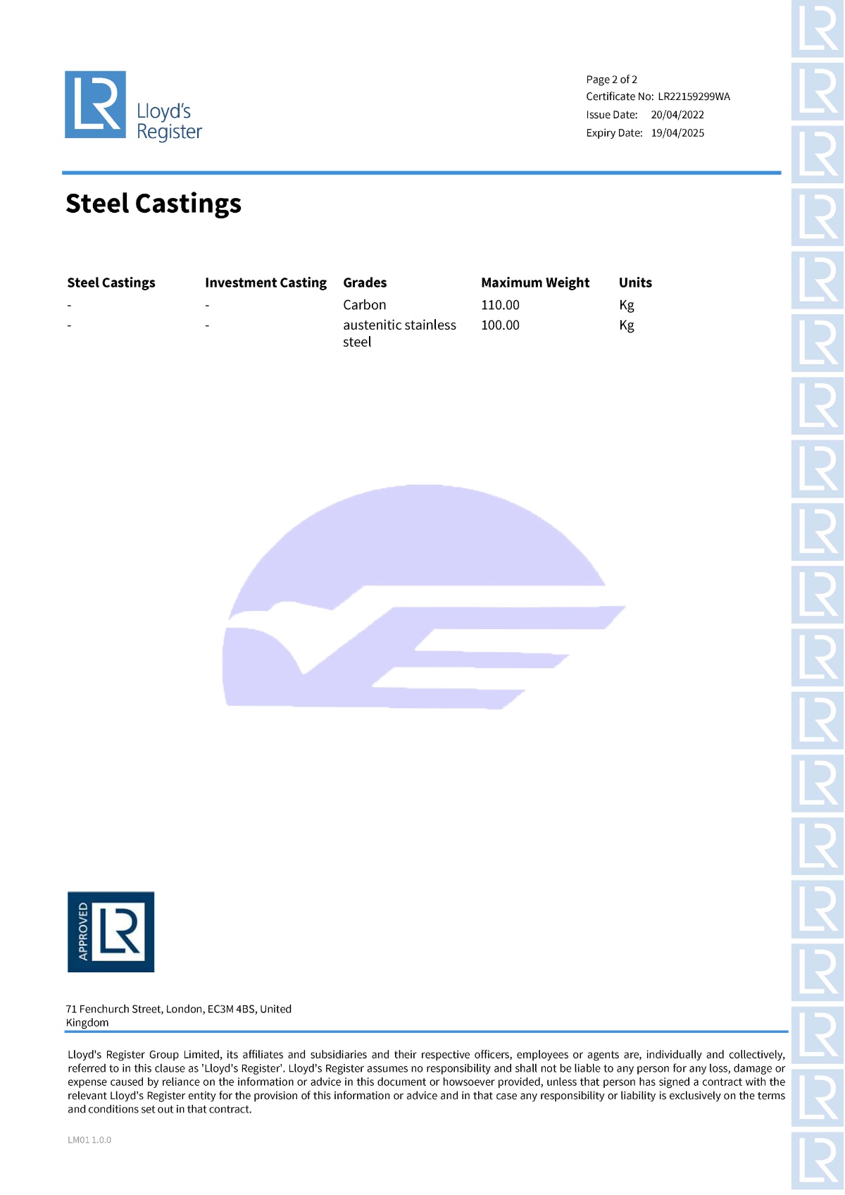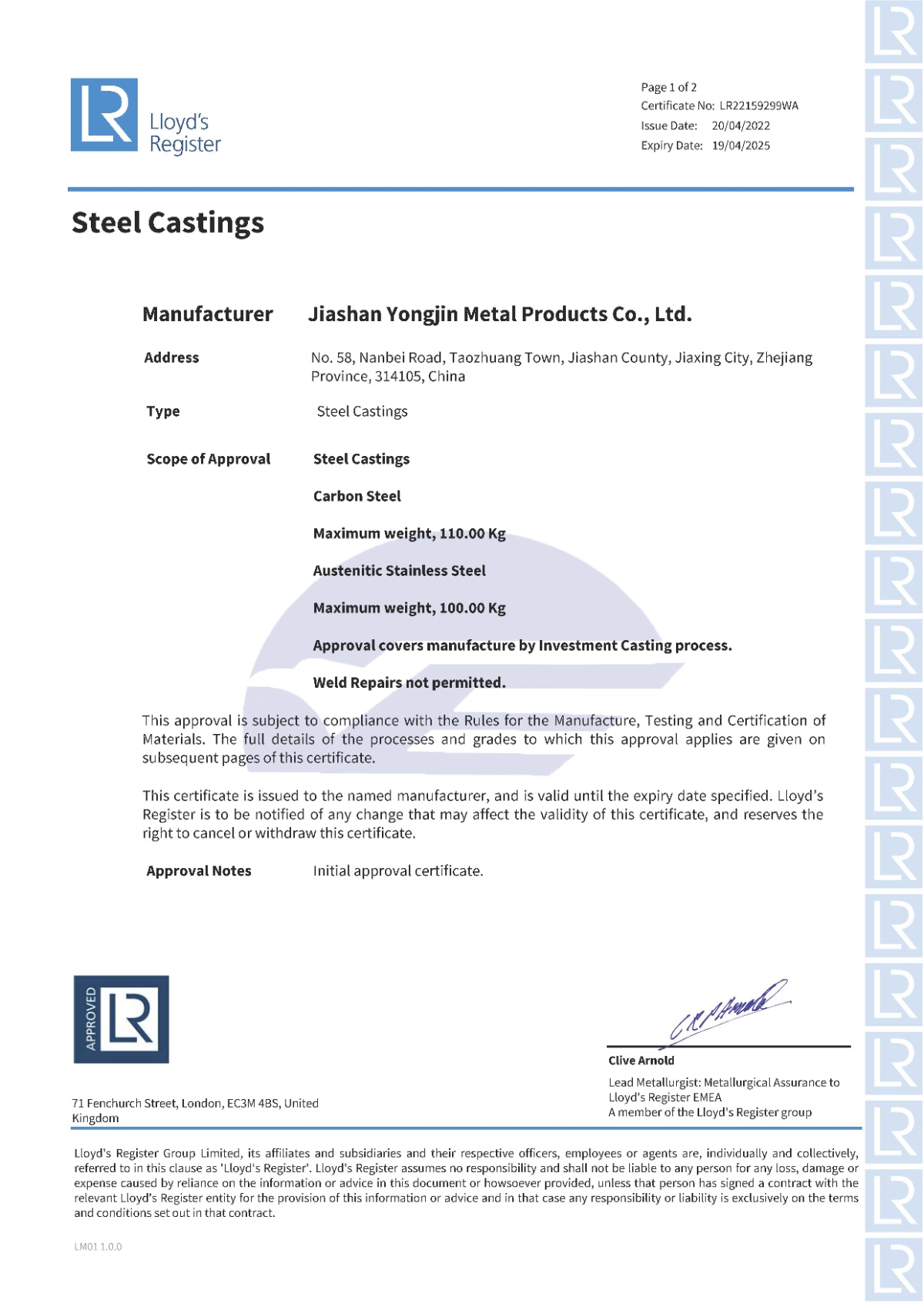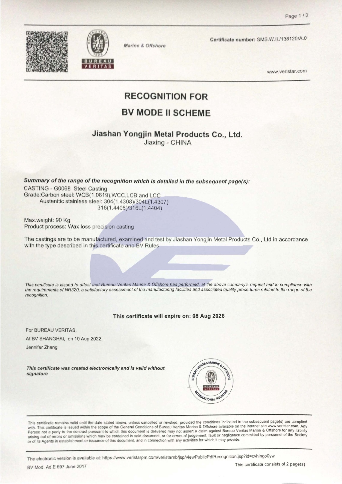通過(guò)英國(guó)勞氏及法國(guó)BV工廠認(rèn)證